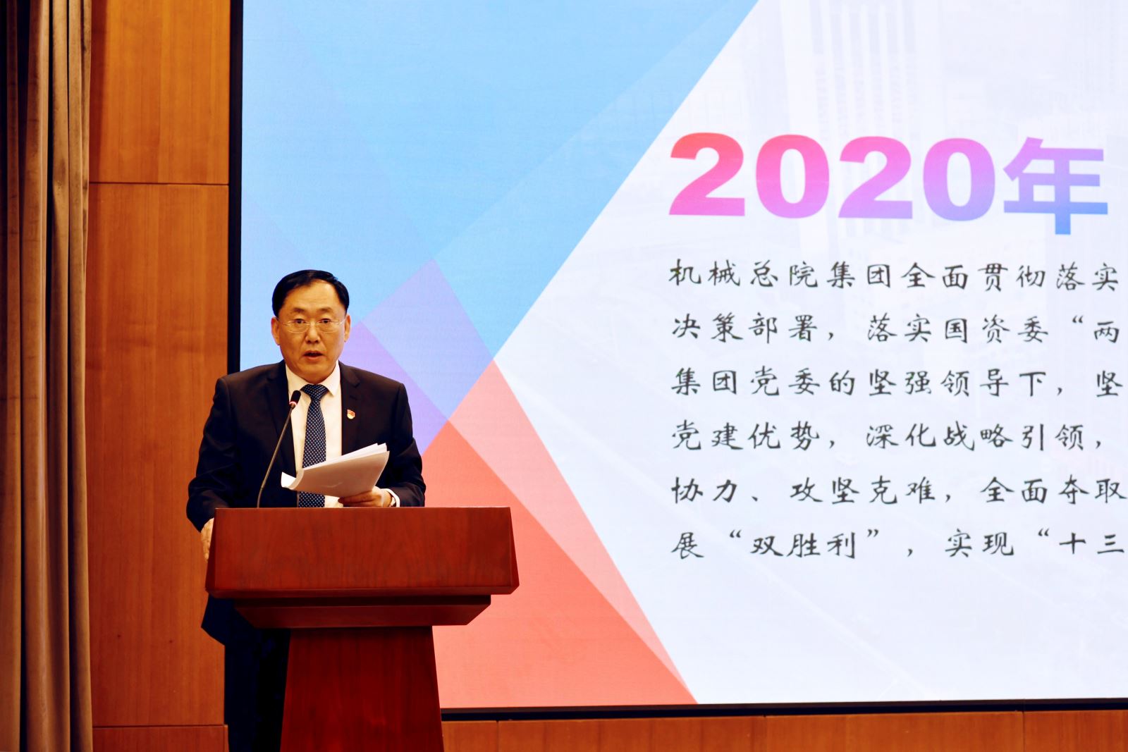 王西峰總經理指出:2020年,機械總院集團全面貫徹落實黨中央國務院重大決策部署,落實國資委“兩個力爭”要求,堅守底線思維,發揮黨建優勢,深化戰略引領,全體干部職工同心協力、攻堅克難,全面奪取疫情防控和經濟發展“雙勝利”,實現“十三五”戰略圓滿收官。2021年,機械總院集團將以習近平新時代中國特色社會主義思想為指導,全面貫徹黨的十九大和十九屆二中、三中、四中、五中全會精神,立足新發展階段、貫徹新發展理念、構建新發展格局,堅持穩中求進工作總基調,聚焦高質量發展,按照“做強科研、做優經濟、做大影響力”目標,實施集團“十四五”戰略規劃,堅持深化改革,發揮創新優勢,搶抓市場機遇,有效控制風險,全力確保技術經濟持續健康發展。